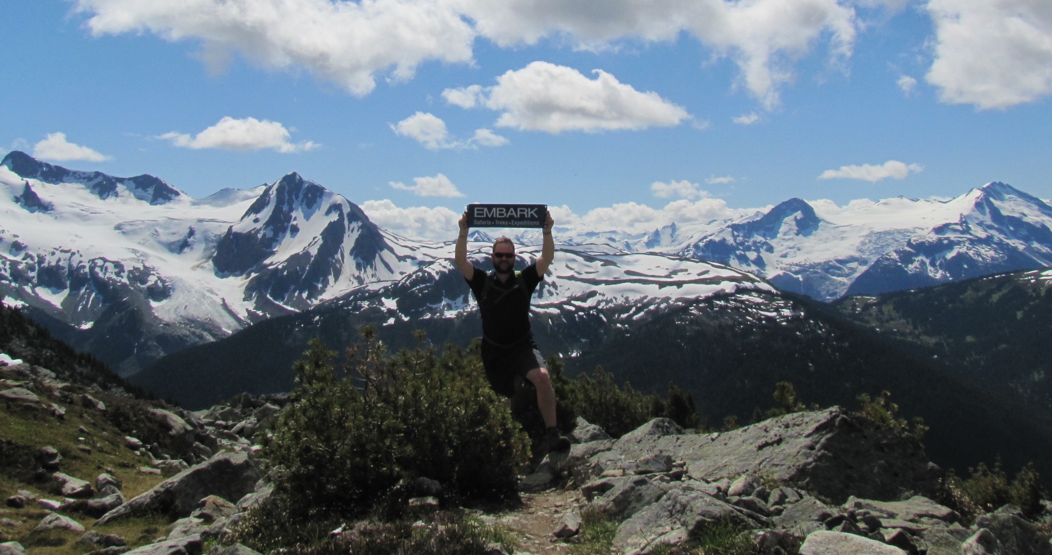Here’s a shot of our good friend Mark Weidman, flashing the Embark banner during a trek in British Columbia’s Whistler/Blackcomb area. We appreciate Mark’s support and admire his adventuring ways!