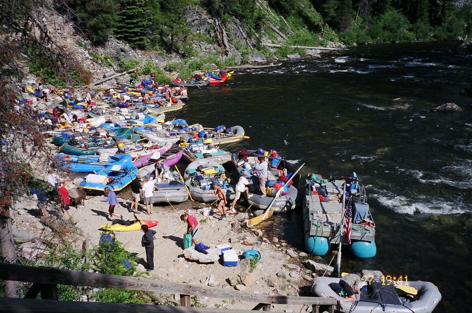 The Middle Fork of the Salmon is perhaps the best whitewater river in the Pacific Northwest. The beauty of the river is you raft 100 miles and there are a series of approximately 100 rapids. It’s rare, for many rivers in the Northwest to get a large amount of rafting days and get that many rapids. The best part about the entire trip is the hot springs at a number of the campsites. Our crew consisted of 20 people, and you could see we had to scout of a number of the rapids.