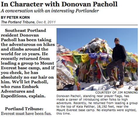This time, the Portland Tribune profiled our founder Donovan Pacholl. Interview highlights include Donovan’s infamously overpriced haircut–“I had a guy in Nepal shave my head like a monk and do something with fire; he was using some kind of a lighter, throwing fireballs at my ears to burn my ear hair”–and his proposal story in Tanzania. Check it out!