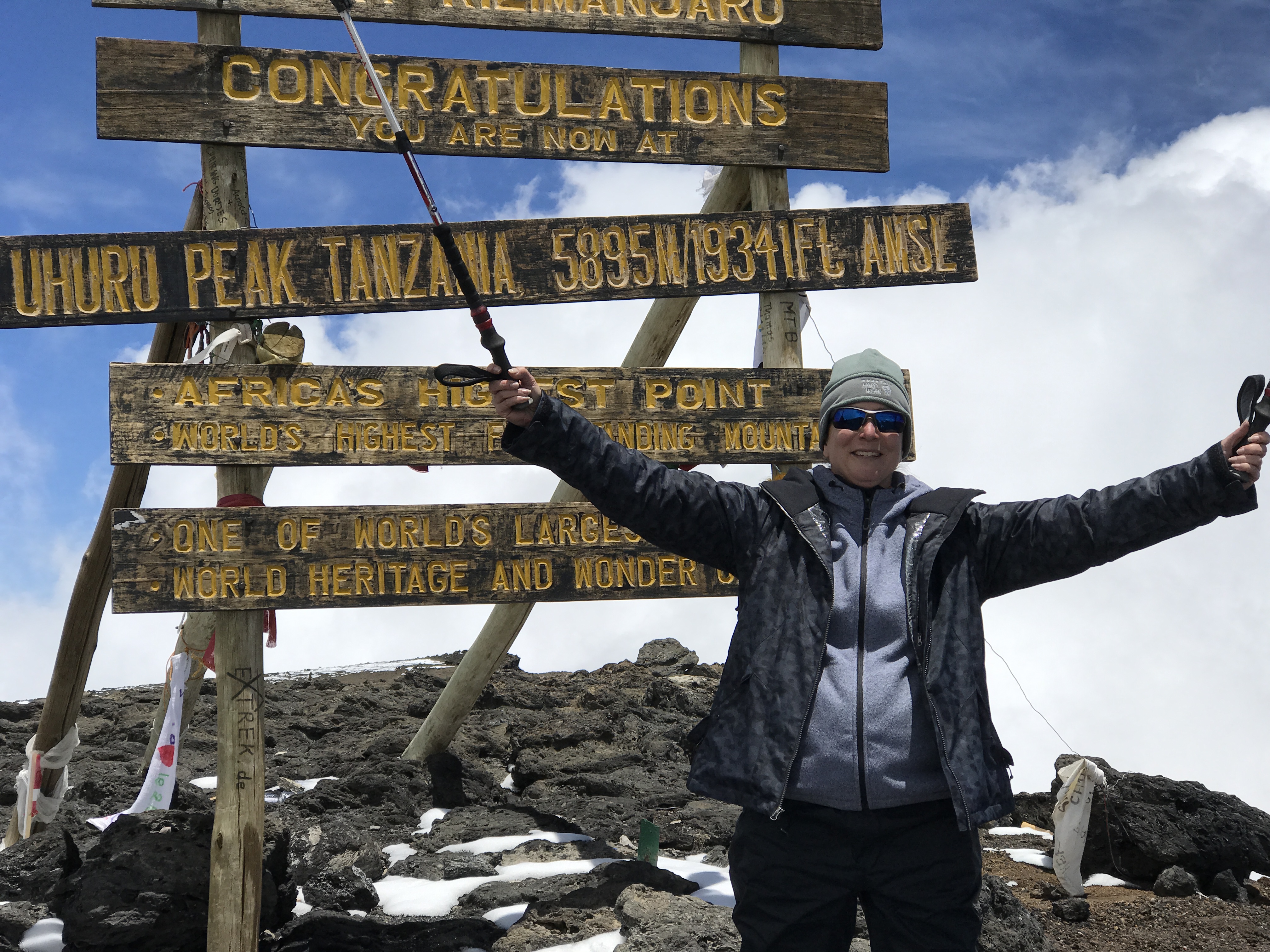 I also did a three-day safari and went to Zanzibar. All three were different trips, and I learned a lot. For the climb, I was amazed at the guides’ strength and what they do day after day. We had new shoes and warm jackets; they had stuff that wasn’t the same quality and were carrying 10 times more than the rest of us. I was amazed by their spirit; they were cheering us on when I thought we should be cheering them on!