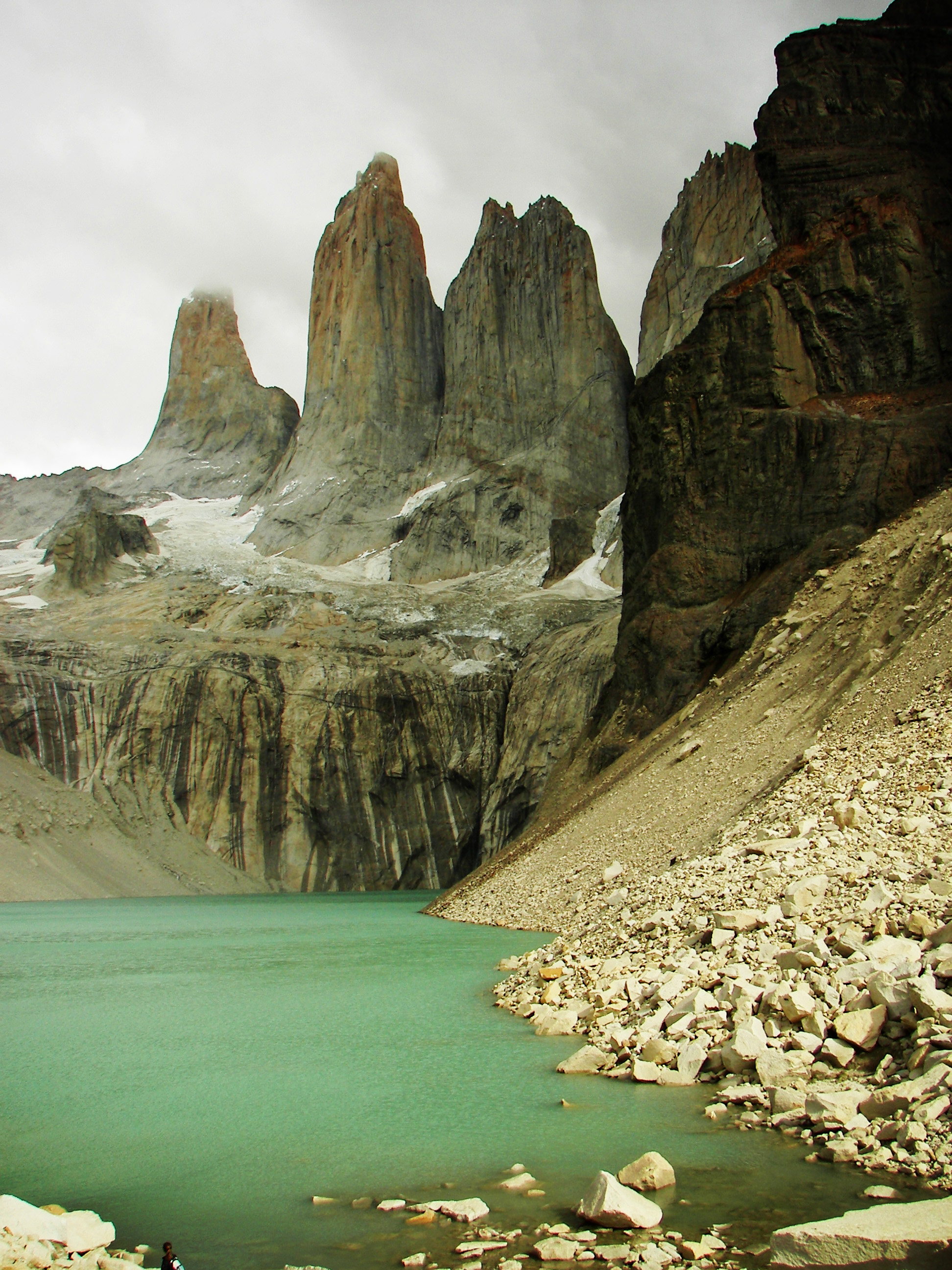Simply, the route is to come in by bus from the town of Puerto Natales, take a catamaran across a vast glacial lake, and do a round-trip 18-mile hike to a rifugio and campsite on Lago Grey. (As an example of schedule flexibility, this can be done in a day, or you can spend the night at Lago Grey). Next it’s a 15-mile section through the scenic French Valley, with views of a massive glacier and more granite peaks than you can count, winding up at another rifugio/campsite. A 12-mile section then takes you along another glacial lake to a campsite at the base of the Torres themselves. The final day you rise early to see the sunrise on the towers, then hike out of the park to catch a bus back to civilization.