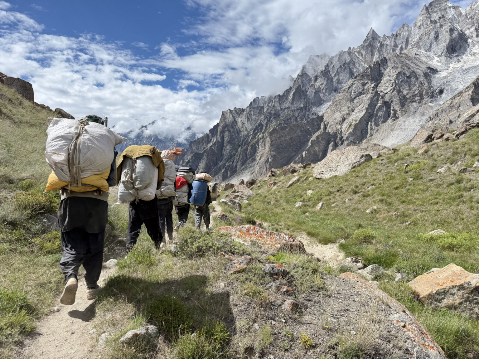 Climbing out of camp this morning, we’re met with a challenging ascent over just 5 miles. Mercifully, this climb brings us up to the mighty Baltoro Glacier, which we will follow for several days until we reach Concordia. The terrain is uneven, steep in places, and rock-laden, though there are occasional sections of well-defined trail.