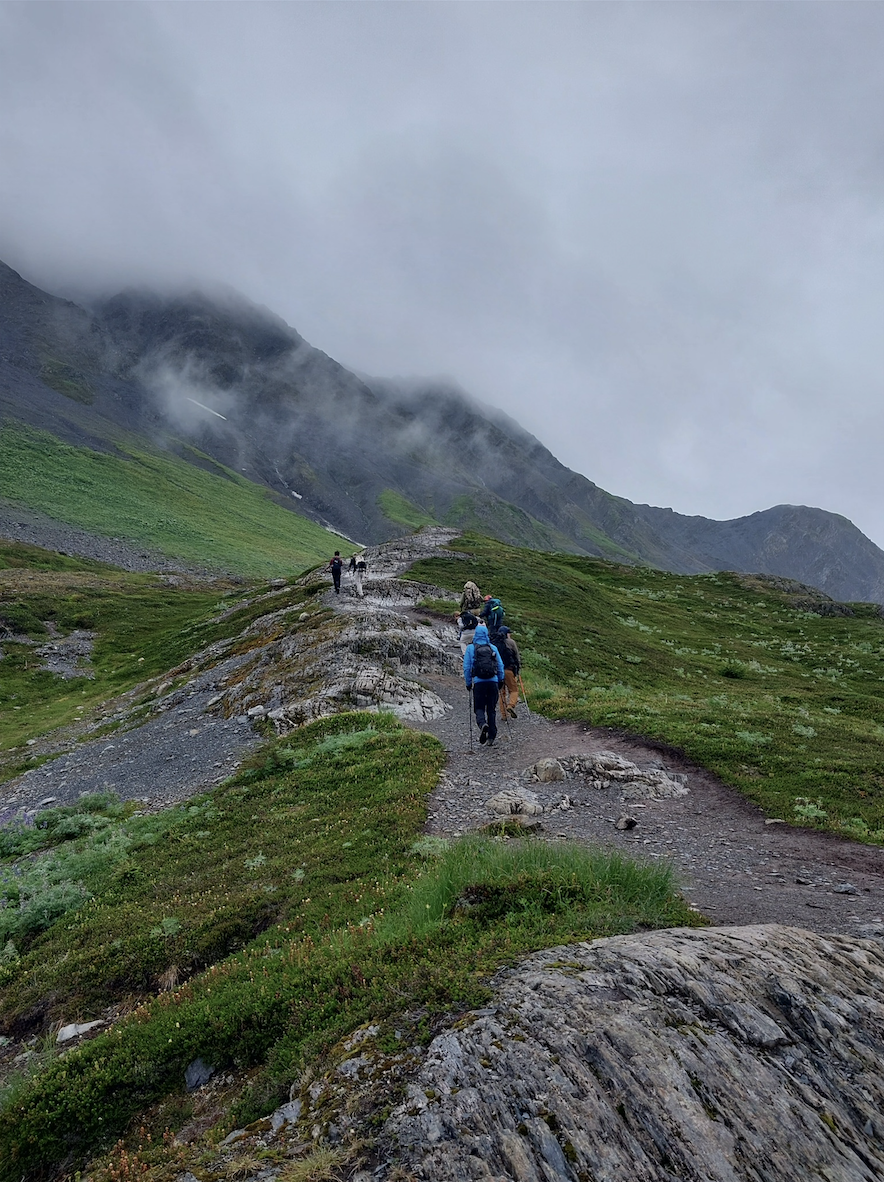 Our final full day in the backcountry is reserved for a big objective in serious terrain. Leaving camp early, we set out on a long, committing hike into one of the most distinctive corners of Lake Clark National Park—a remote alpine valley tucked deep into the surrounding mountains. The route demands endurance and focus, rewarding steady effort with increasingly expansive views and a true sense of exploration.
