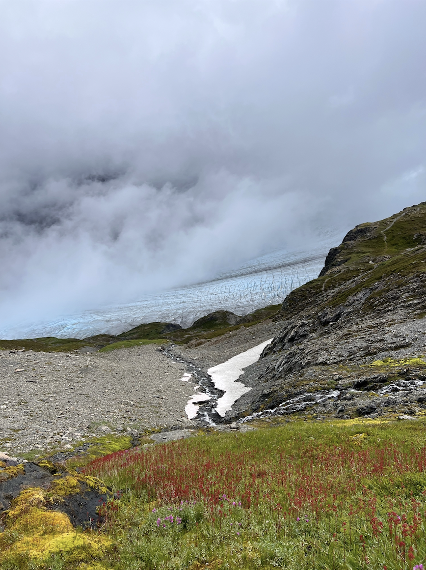 With the rhythm of camp established, today is about going farther and moving deeper into the landscape. After breakfast, we set out with light day packs to explore another powerful drainage feeding the headwaters of Turquoise Lake—a wild corridor shaped by ice, water, and time. The terrain invites curiosity and commitment, drawing us steadily upstream through glacial outwash and open valley floors.